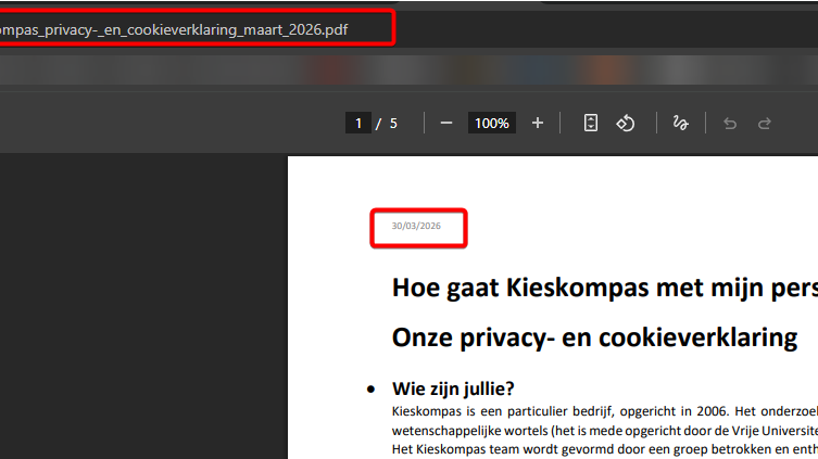 3. Opvallend is dat de privacyverklaring direct na de verkiezingen werd aangepast, precies op het moment dat er kritische vragen werden gesteld. Ondanks herhaalde verzoeken om een onafhankelijk technisch keuringsrapport of een concreet verbeterplan voor de toekomst, weigert de directie van Kieskompas elke verdere medewerking.